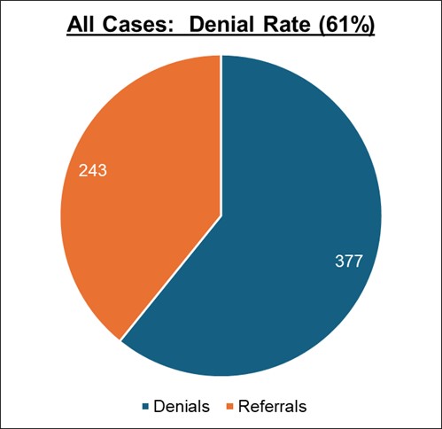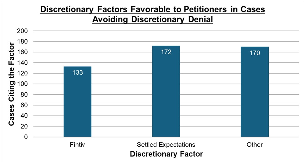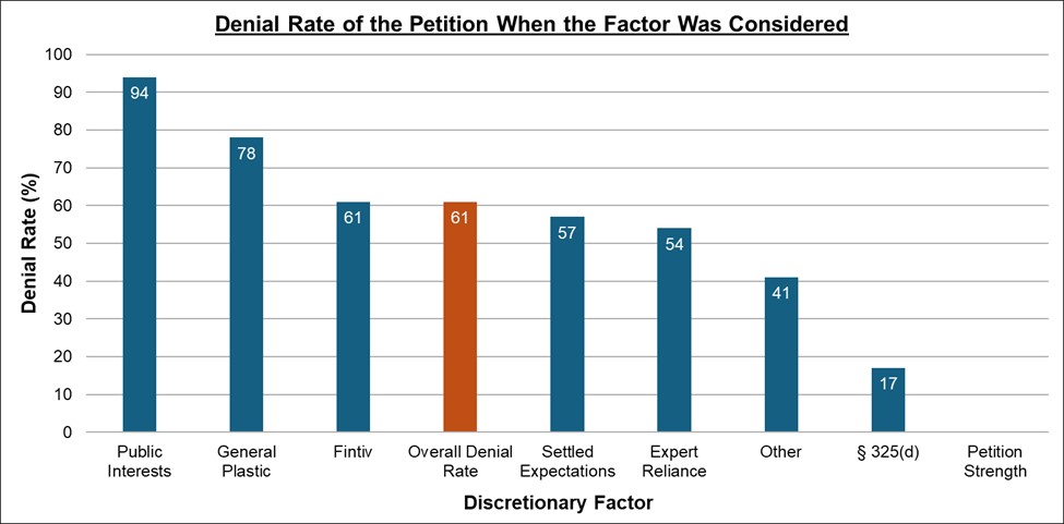 Overall denial rates of petitions when a factor was explicitly considered are charted below.