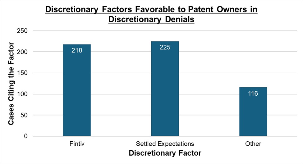 Certain factors favored patent owners in denials more often than others, with settled expectations and Fintiv leading.